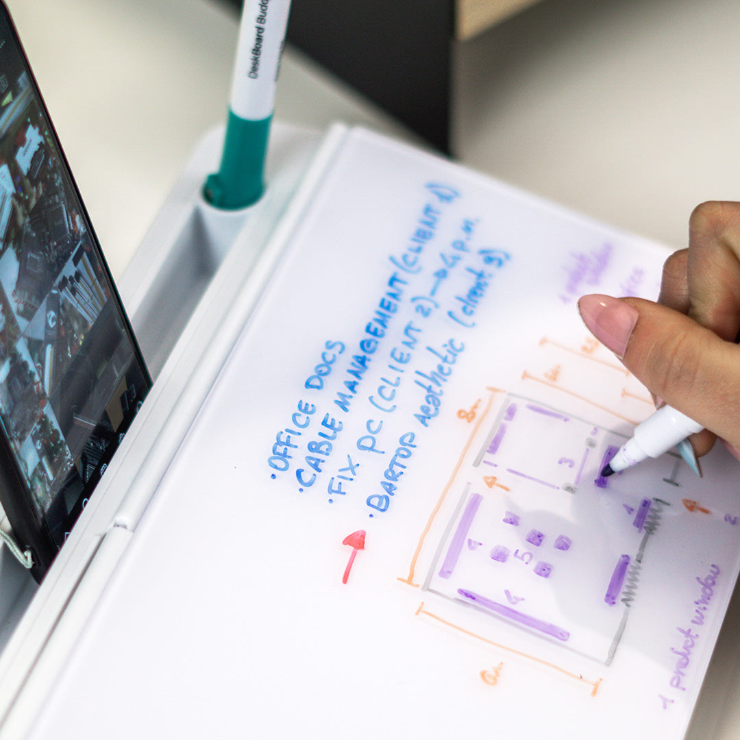 Use the DeskBoard Buddy to quickly jot down notes while you are on a call, in a meeting, or deep in your productive flow. Also great to jot down quick to-do list items throughout the work day.