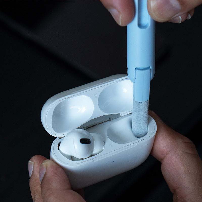 Meet the innovative Multi-Purpose Cleaning Kit - the ultimate solution for maintaining the cleanliness and functionality of your electronic devices. This unique all-in-one cleaning set is designed to keep your desk area, keyboard, computer monitor, laptop screen, and earbuds clean! This unique all-in-one kit includes: